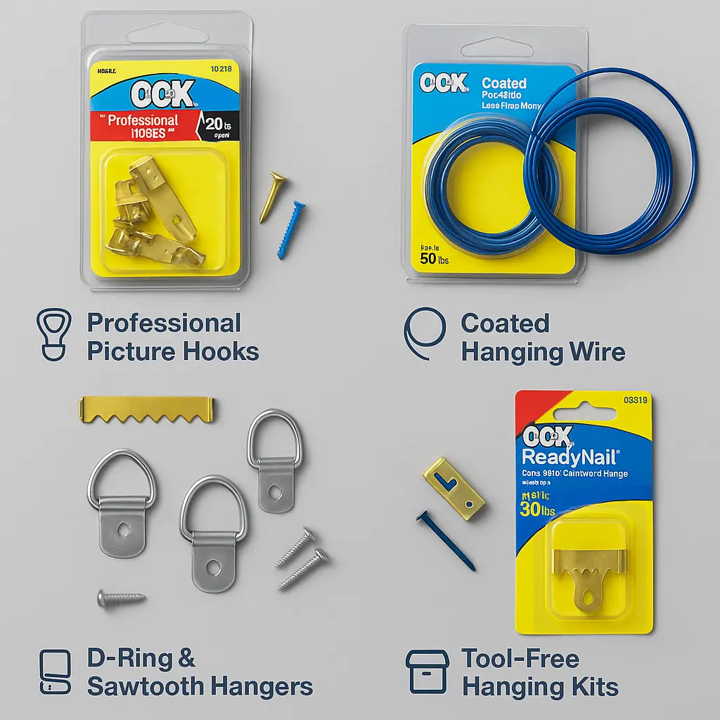 🧰 Tool-Free Hanging Kits – All-in-one solutions for easy, renter-friendly mounting